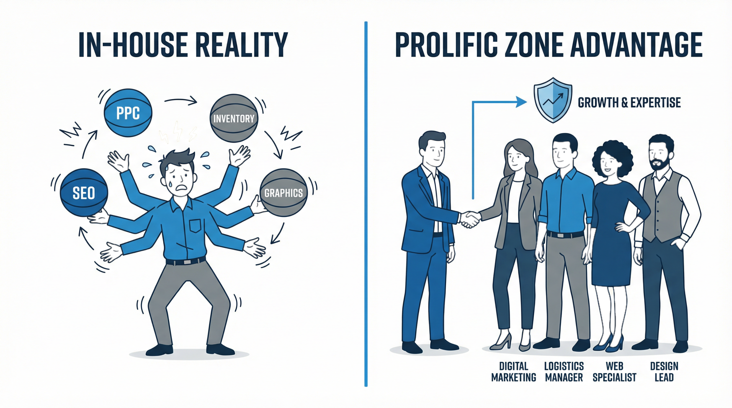 Contrast the in-house model with the agency model. When you partner with Prolific Zone, you aren’t hiring a person; you are hiring a system.
